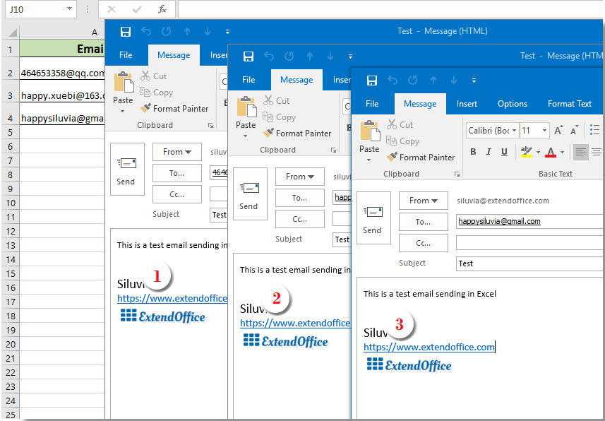 Припустимо, що вам потрібно відправляти електронні листи в список адрес електронної пошти, включаючи підпис Outlook у всіх відправляють повідомленнях електронної пошти. Будь ласка, зробіть наступне.