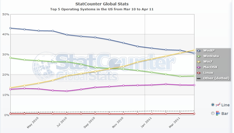 Головною проблемою при переході на нову версію стануть не його недоліки, а ситуація, що склалася на ринку операційних систем. У корпоративному секторі частка Windows XP становить близько 69 відсотків. Ситуація розвивається за знайомим сценарієм: конкурувати новому флагману від Microsoft доведеться в першу чергу зі своїми попередниками.