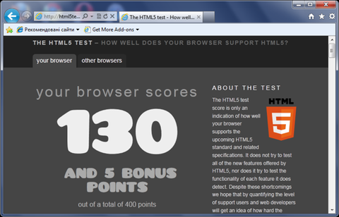 Чи не найбільш вражаючий результат в тесті на підтримку HTML5