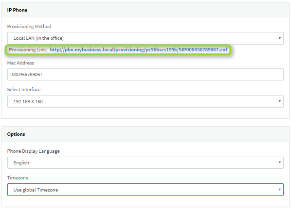 - Опціонально вкажіть часовий пояс "Time Zone" і мережевий інтерфейс сервера, який повинен приймати запити на автонастройку. Це необхідно в разі, якщо сервер 3CX має кілька мережевих інтерфейсів.